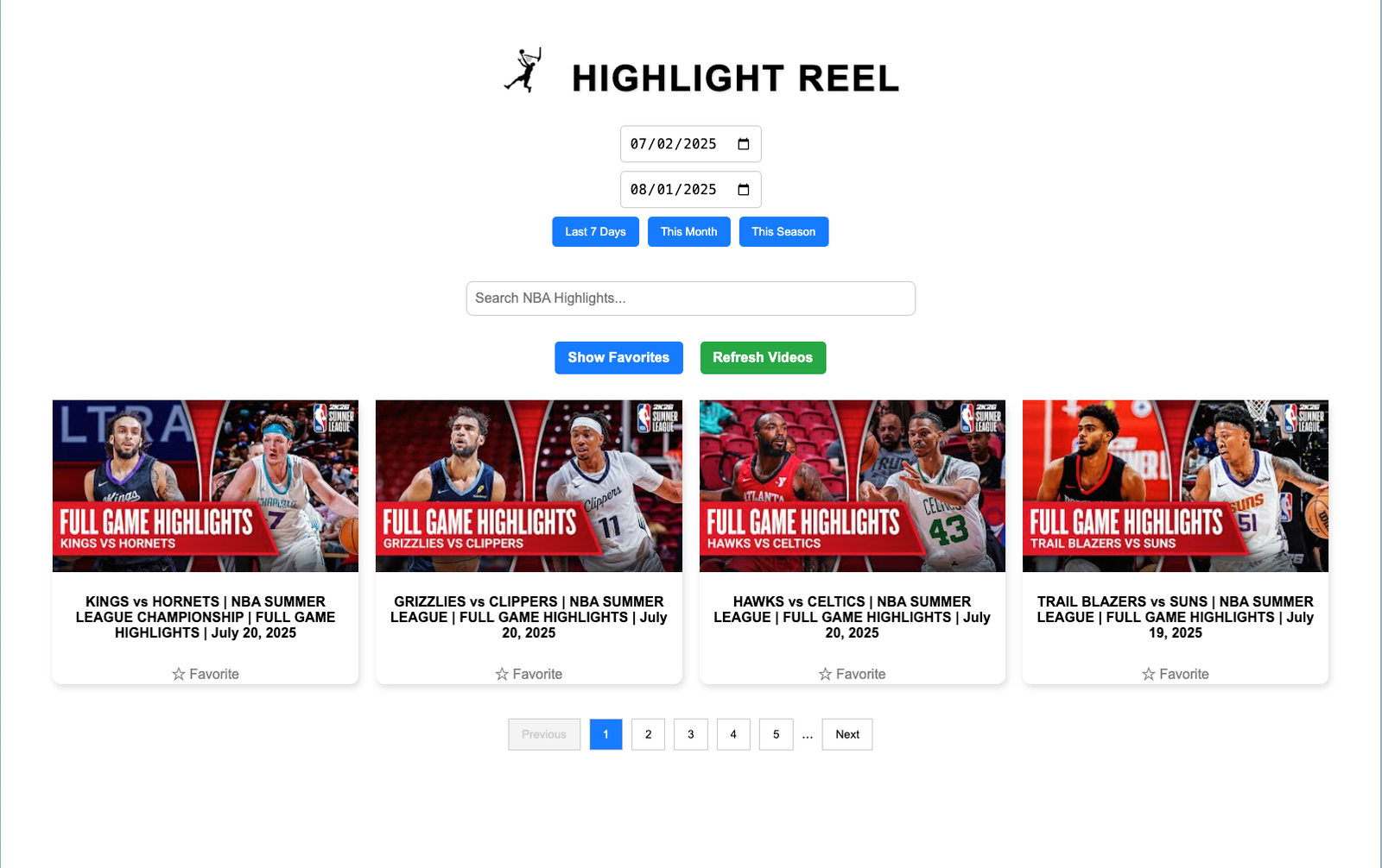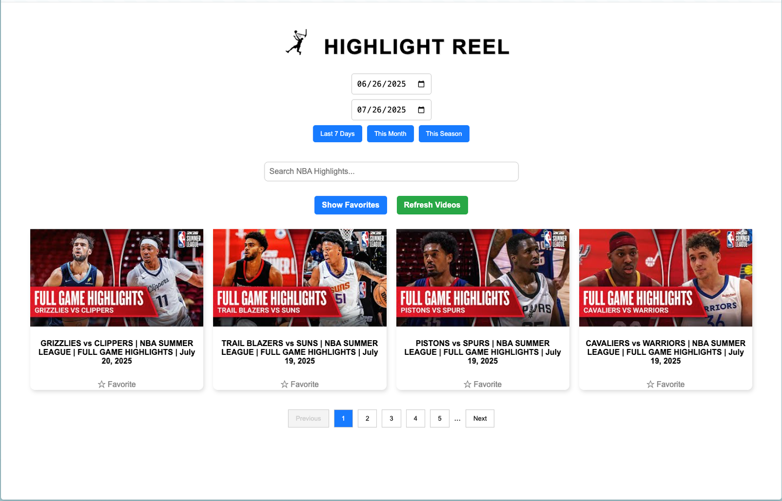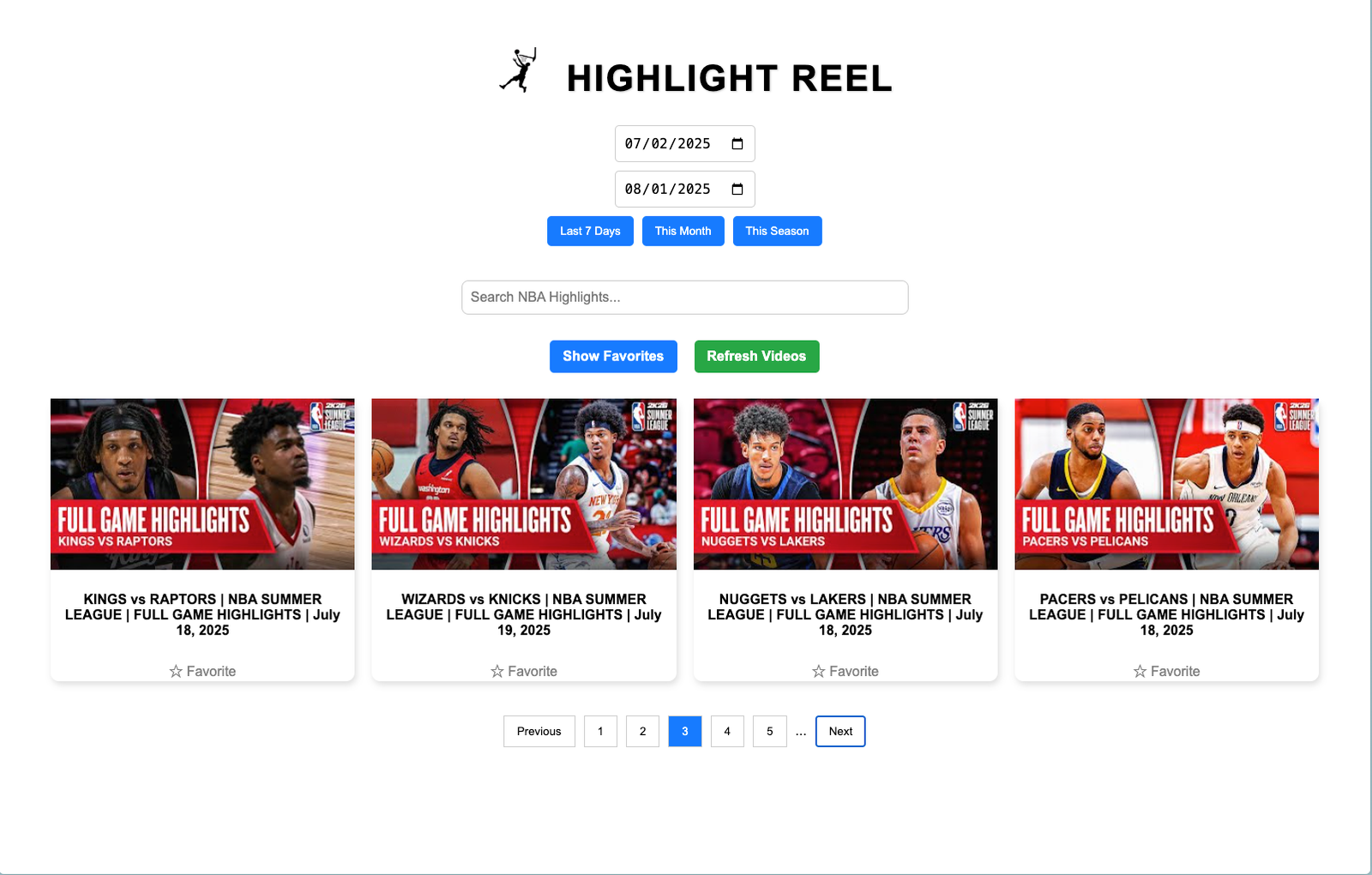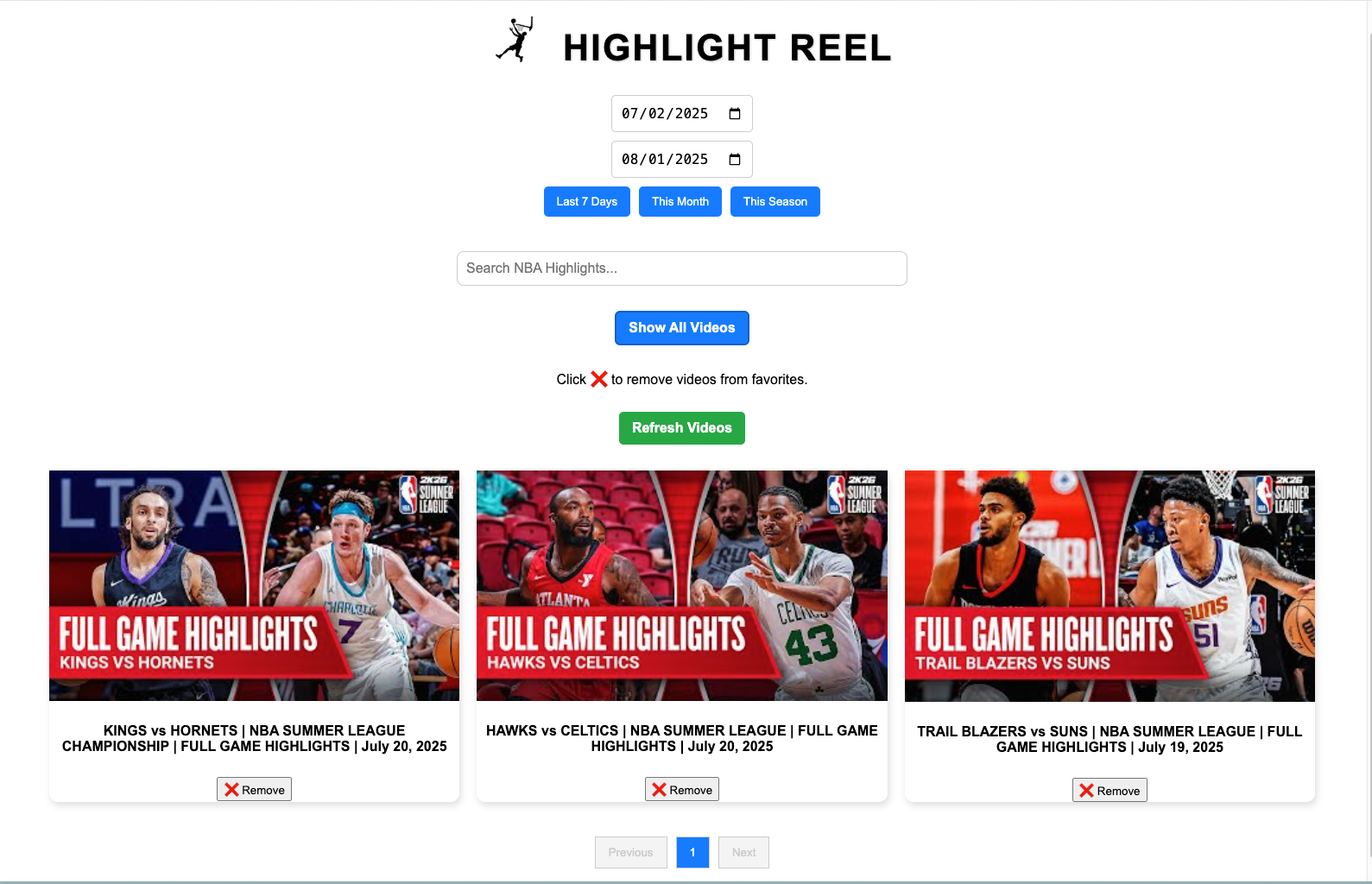 Built a minimal UI where users can pick a date and instantly get relevant NBA highlights. Integrated YouTube’s embed player with graceful loading states and mobile responsiveness.